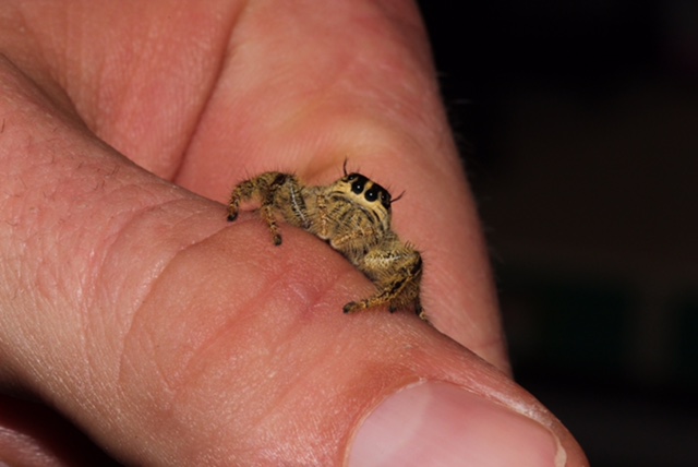 These charming little spiders have become very popular as pets recently, and with good reason – they are ridiculously cute! With large, forward facing eyes and fuzzy bodies, fairly short legs and an endearing habit of cocking their head to regard their keeper, they are a long way from the traditional, scary spider type.