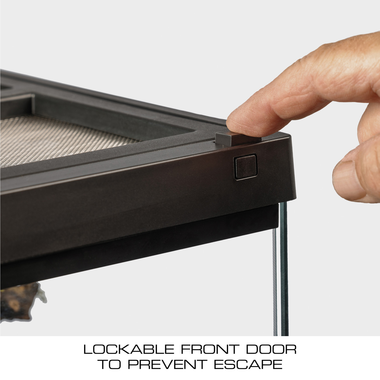 One of the standout features is the patented in-frame locking mechanism for the removable top, which, along with the front-opening door(s), makes maintenance significantly more convenient. Made with a stainless steel screen, the lockable Top ensures optimal UVB penetration, vital for the well-being of the inhabitants.