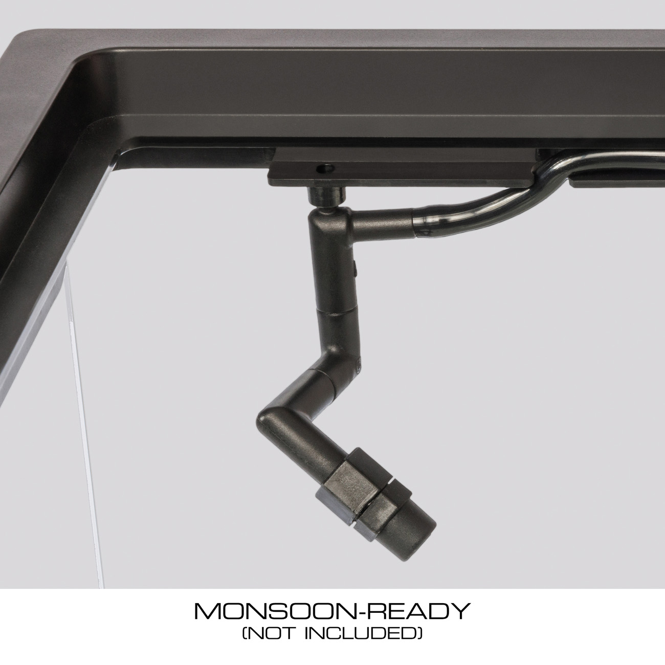 On top, at the back of the terrarium, there are multiple self-closing inlets for wires or tubing. Inside, gutters have been thoughtfully included for effective tubing management, and the specific attachment points for nozzles, facilitate the setup of an automatic misting system.