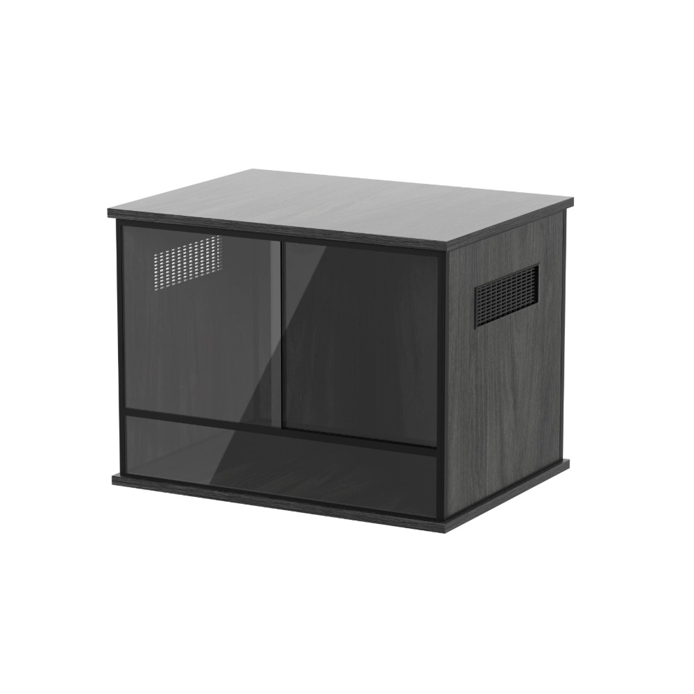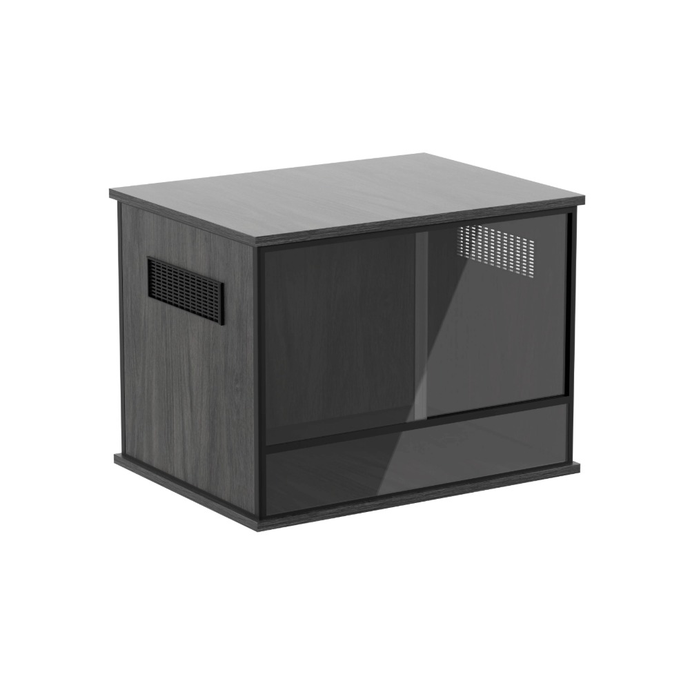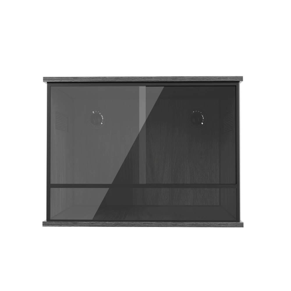 The ProRep Vivarium Black 2ft x 18″x 18″(60 × 45 × 45cm) is a compact, stylish reptile enclosure designed to look great in any home. Finished in a warm oak tone, it blends naturally with modern interiors while providing a practical, durable habitat for small reptiles and amphibians. Built with robust aluminium corner posts and lightweight melamine‑coated panels, it offers long‑lasting strength without becoming heavy or difficult to handle. The full‑height sliding glass doors give you a clear, uninterrupted view of your animal, and the side ventilation system helps maintain healthy airflow throughout the enclosure.