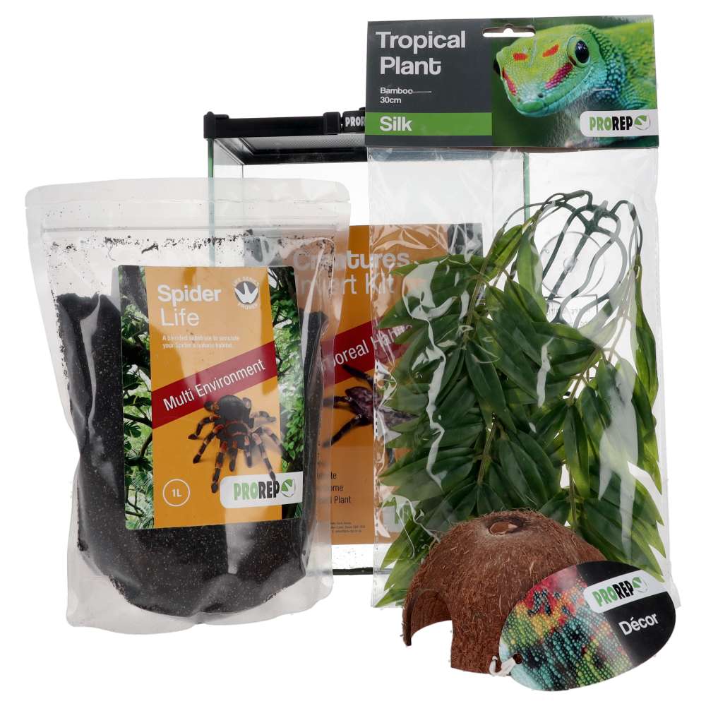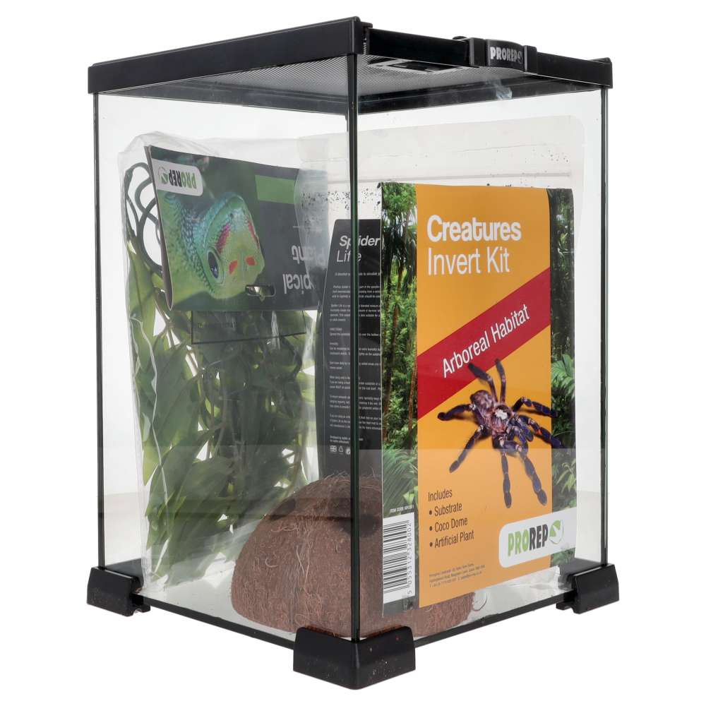 The ProRep Creatures Invertebrate Kit Small is a complete starter setup designed for housing a variety of small invertebrates, including spiders, mantids, and other arboreal species. Each component has been chosen to help you create a secure, enriching environment that supports natural behaviours and reduces stress.