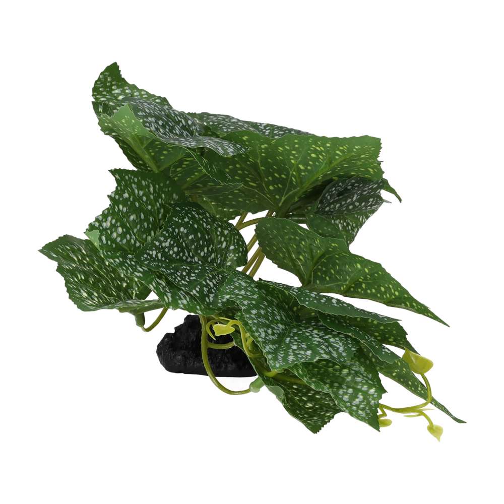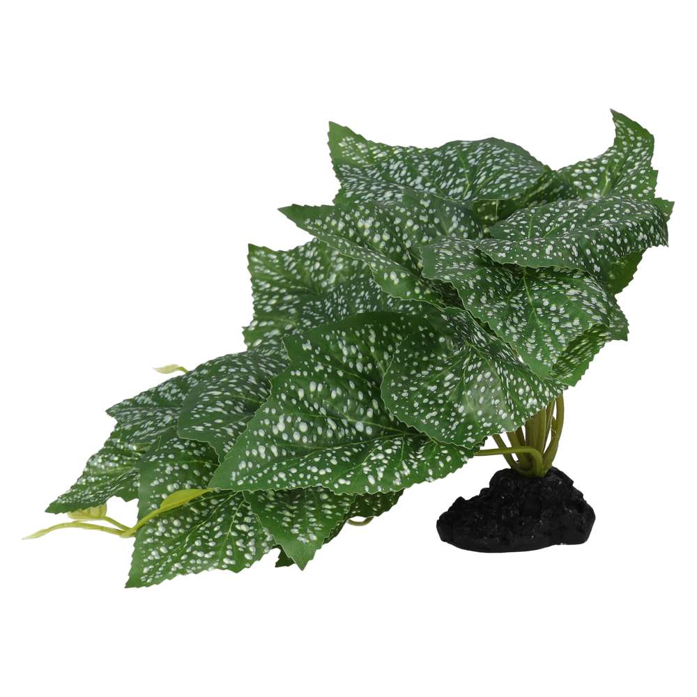 Compact silk Begonia with polka dot leaves, ideal for adding detail and enrichment to small or medium enclosures.