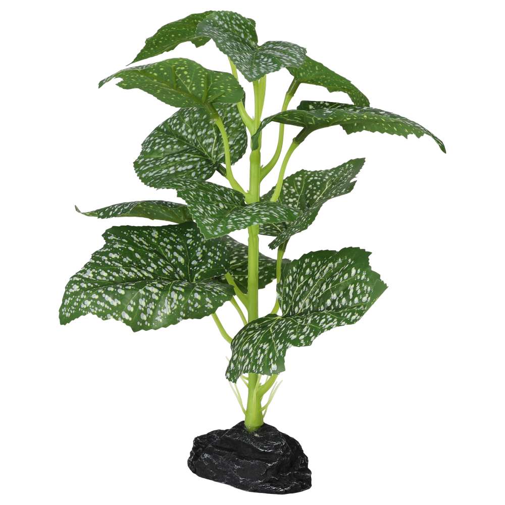 Artificial silk Begonia featuring striking polka dot leaves, perfect for enhancing visual interest in reptile and amphibian enclosures.