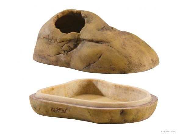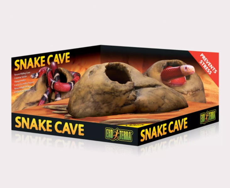 The Exo Terra Snake Cave makes the perfect addition to your terrarium. A proper hiding area is an essential feature of the natural terrarium. Without a safe hideout and resting area, reptiles and amphibians can easily develop stress that may affect their activity and appetite. The natural look of the Exo Terra Snake Cave allows it to integrate into any type of terrarium, and its sturdy design prevents it from being easily tipped over by larger reptiles. The Exo Terra Snake Cave also includes natural moss, which can be dampened to create a moist hideout or nesting box for various species of snakes and lizards.