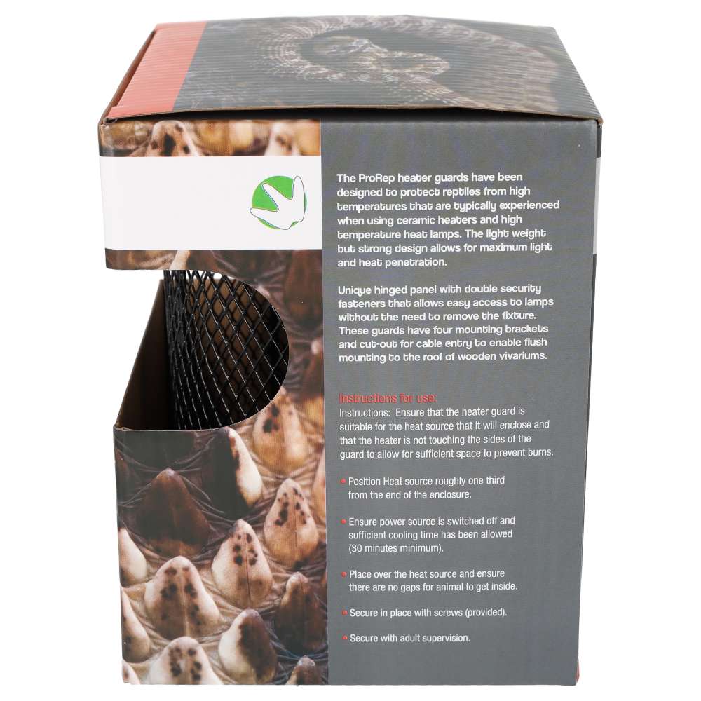Ensure your reptile’s safety with the ProRep Heater Guard Standard Round, designed to protect animals from accidental burns caused by spot lamps or small ceramic heaters. Made from strong, powder-coated steel, this lightweight yet durable guard allows maximum heat and light penetration while preventing direct contact with heating elements.